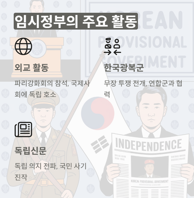 임시정부는 단순한 상징이 아니라 실질적인 독립운동의 중심 역할을 했습니다. 외교 활동, 무장 투쟁, 독립신문 발행 등을 통해 전 세계에 우리의 의지를 알렸죠.