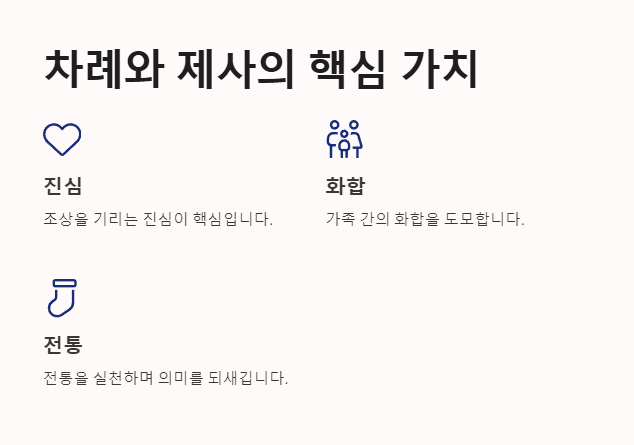 - 초헌(初獻): 첫 잔을 올리는 절차로, 조상께 감사와 존경의 마음을 표현합니다.