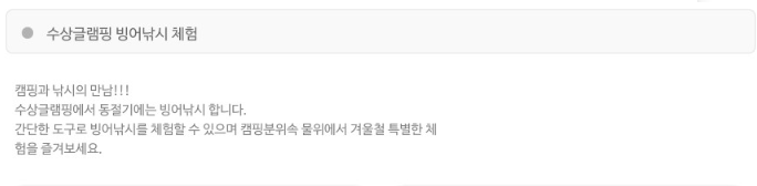 수상 글램핑에서 프라이빗하게 빙어낚시를 즐길 수 있는 프로그램은 반드시 사전 예약이 필요합니다. 예약은 공식 홈페이지에서 가능하며, 주말과 공휴일은 빠르게 마감될 수 있으니 서두르는 것이 좋습니다.