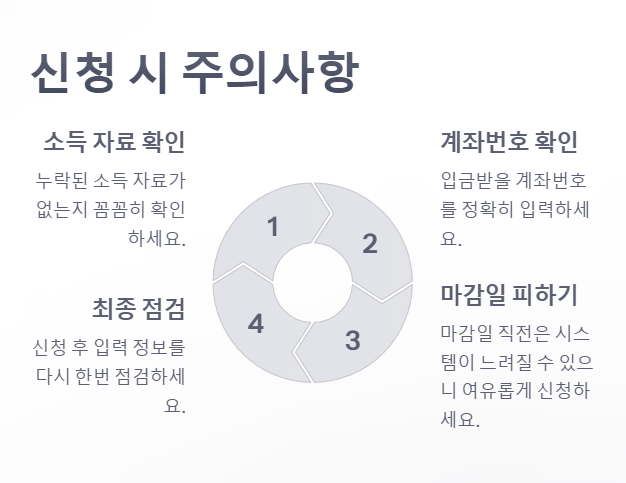 또, 신청 마감일 직전에 몰리면 시스템이 느려질 수 있으니 여유롭게 진행하세요. 이런 작은 노력이 큰 차이를 만들 수 있어요!