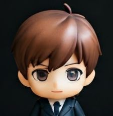 예시: "A cute Nendoroid style figure of a smiling Shiba Inu dog wearing a small party hat, plastic toy texture, standing pose on a clean white background, bright studio lighting."