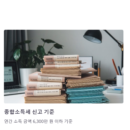 - 종합소득세 신고 시 소득 금액이 연간 6,300만 원 이하