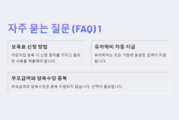 - 신청 방법: 어린이집 등록 시 신청 절차를 거쳐야 하며, 필요한 서류를 제출해야 합니다.