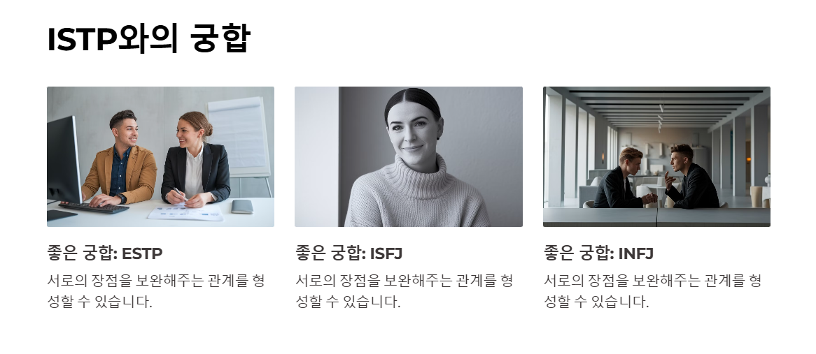 반면, ENFJ나 ESFJ와는 갈등이 생길 수 있습니다. 이들은 감정적이고 관계 중심적인 성향이 강해, ISTP의 실용적인 접근과 충돌할 수 있습니다.